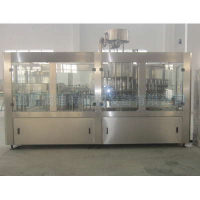 蘇打水三合一灌裝生產(chǎn)線:瓶子通過空瓶輸送系統(tǒng)進(jìn)入灌裝機(jī)的分瓶輪,裝在瓶子上的瓶夾使瓶子成為三合一的一定距離一臺(tái)連續(xù)發(fā)送的洗衣機(jī)。洗瓶機(jī)的旋轉(zhuǎn)板配有一個(gè)瓶口不銹鋼瓶夾。這將夾住瓶口并沿導(dǎo)軌旋轉(zhuǎn)180度,使瓶口朝下。在洗瓶機(jī)的某些區(qū)域,瓶夾的噴嘴先噴灑無菌水,然后噴灑無菌水(如果不需要,則只需要洗一次)即可消毒和清潔瓶子的內(nèi)壁。