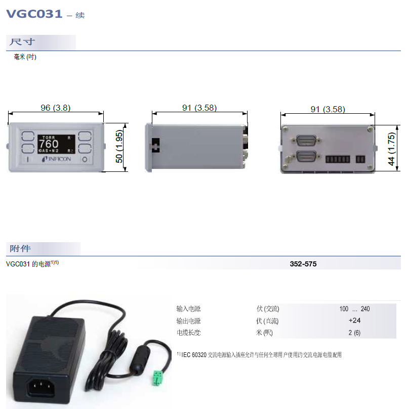 通過用戶提供的 12 至 28 V(直流)或 INFICON 的 VGC031 電源供電