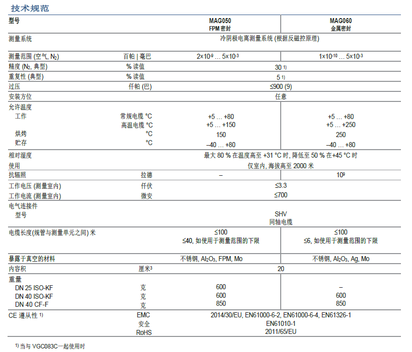 MAG050 測(cè)量低至 2 × 10-9 百帕 | 毫巴, MAG060 低至 1 × 10-10 百帕 | 毫巴.