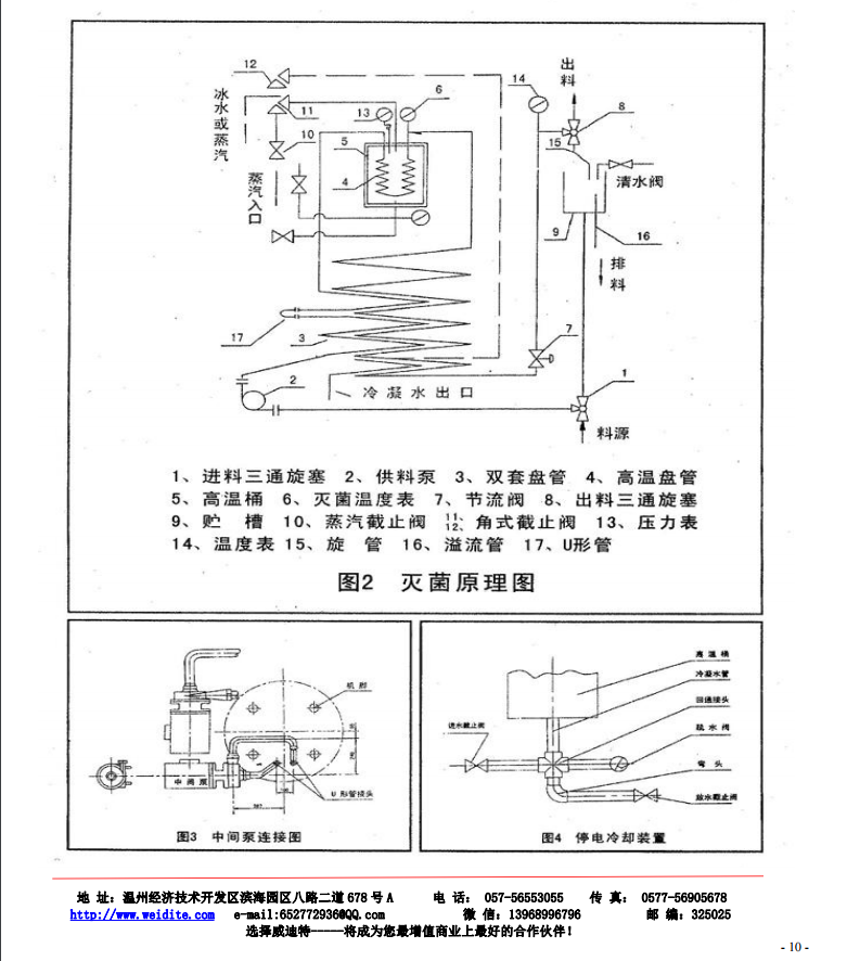 滅菌機(jī)與物料接觸部分,都采用不銹鋼制造,雙套盤(pán)管用專(zhuān)用機(jī)床加工,同心度高。內(nèi)表面光潔,從而使液料通過(guò)雙套盤(pán)管時(shí)形成均勻的液層,加熱十分均勻。