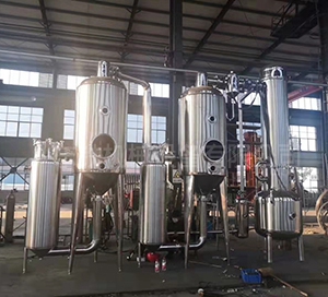 雙效濃縮器采用外加熱自然循環(huán)與真空負壓方式,蒸發(fā)速度快,濃縮比重大。液料在全密封中無泡沫濃縮,用本設(shè)備濃縮出來的藥液,具有無污染,藥味濃。清洗方便。