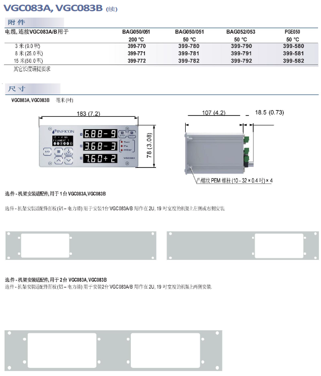 VGC083A, VGC083B,VGC083C真空計(jì)控制器