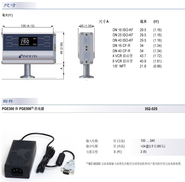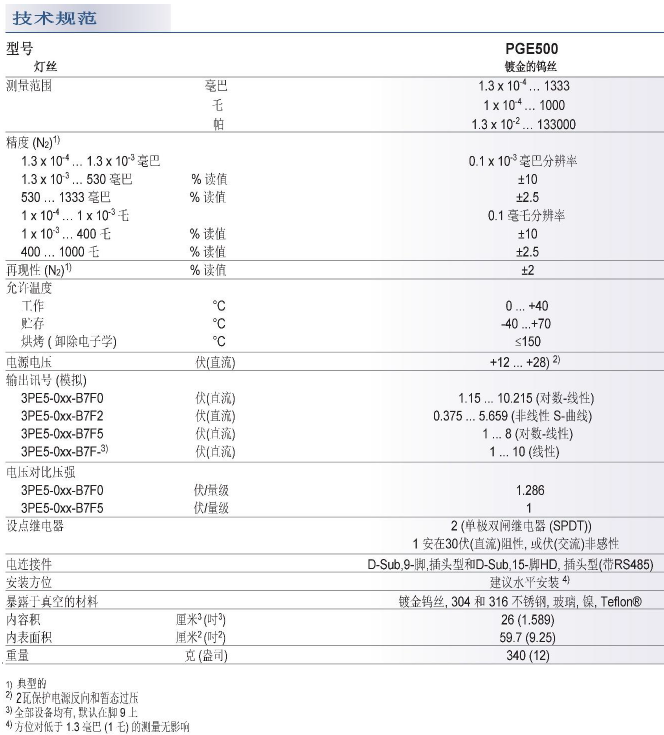 INFICON 皮拉尼儀表增強型 500 (PGE500) 采用了市場上最新的數(shù)字對流增強型皮拉尼技術(shù)。由于對流的物理性質(zhì),這種皮拉尼型產(chǎn)品在 100 至 1000 mbar 的測量范圍中可達(dá)到更高的準(zhǔn)確度。堅固的儀表和傳感器設(shè)計結(jié)合多種工廠內(nèi)置功能,例如明亮、流暢而清晰的 OLED 顯示器及集成鍵盤、RS485/RS232 數(shù)字接口和 4 種可選模擬輸出信號,使得 PGE500 成為高價值/低擁有成本的選擇。所有這些特點使該儀表適合眾多需要低真空度至高真空度范圍的經(jīng)濟型真空測量功能的應(yīng)用。